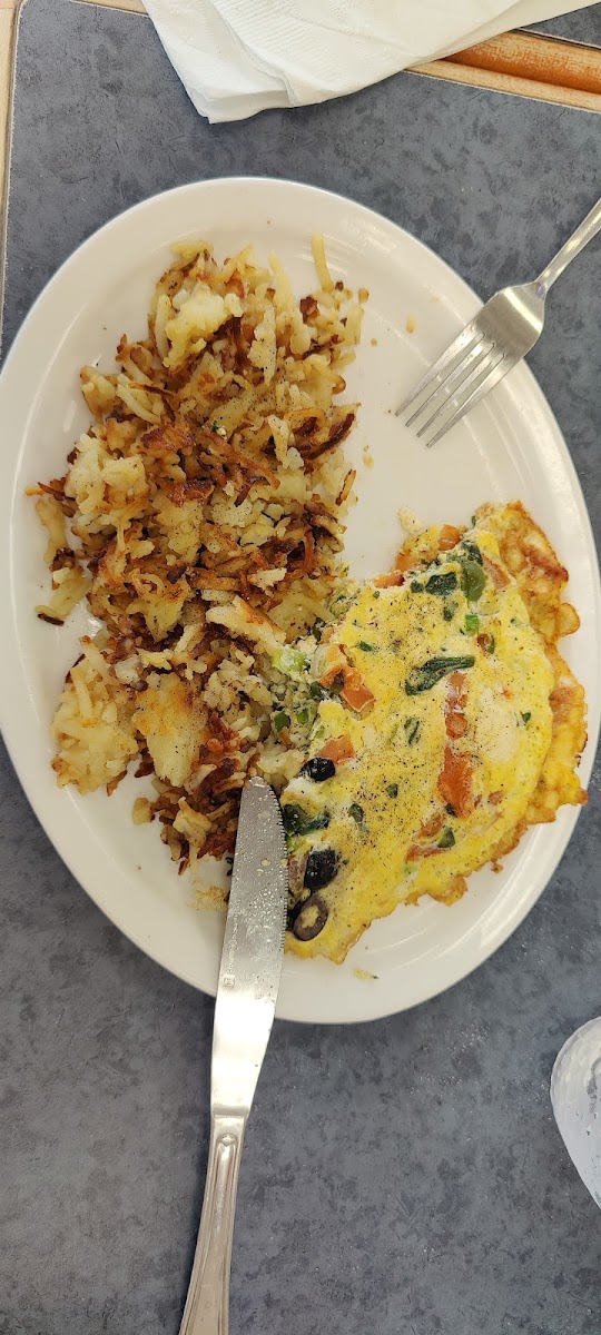 Stopped on a road trip looking for a classic diner breakfast, and received potentially the best breakfast we’ve ever had. Ordered a veg omelette and the mountain man breakfast, and everything - from the pile of veggies in the omelette and the breakfast sausages to the pancakes - was exactly right. The chunky potatoes were light fluffy airy and crunchy. When you moved them around eachother they sounded like whispering waves on a pebbled beach. Our server was also fabulous and refilled our coffees frequently. Would absolutely recommend if a big dirty breakfast is what you are looking for.